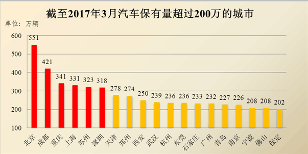 据公安部交管局统计,截至2017年3月底,全国机动车保有量首次突破3亿辆,其中汽车达2亿辆;机动车驾驶人超3.64亿人,其中汽车驾驶人3.2亿人。